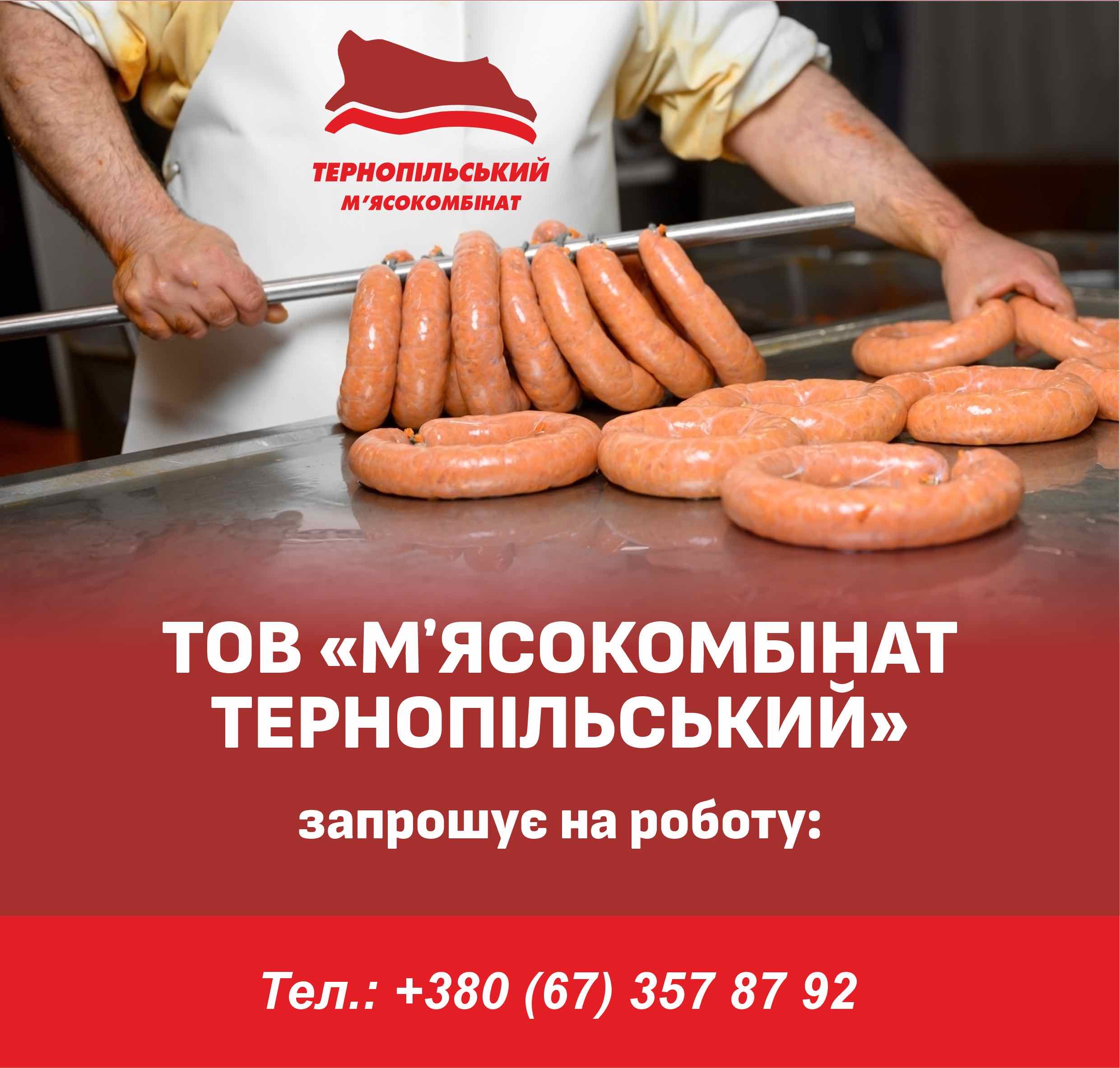 Запрошуємо: -Вантажника; -Оператора харчової лінії; -Апаратника стерилізації консервів; -Готувача фаршу; -Прибиральника виробничих приміщень; -Забивача худоби; -Слюсаря-сантехніка; -Електрогазозварника. Деталі за номером: +380 (67) 357 87 92
